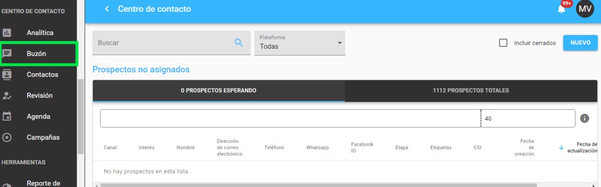 1. From the left side menu, in the Contact Center section, click on "Mailbox."