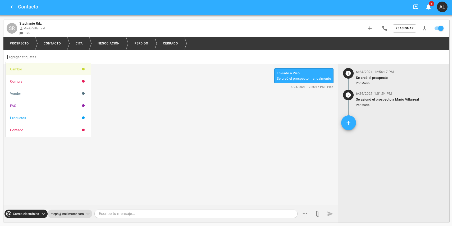 | Se cambió la interfaz para ser amigable con listas largas de Etiquetas, además si se eliminan desde “Configuración” se quedan en los prospectos que ya las tenían.