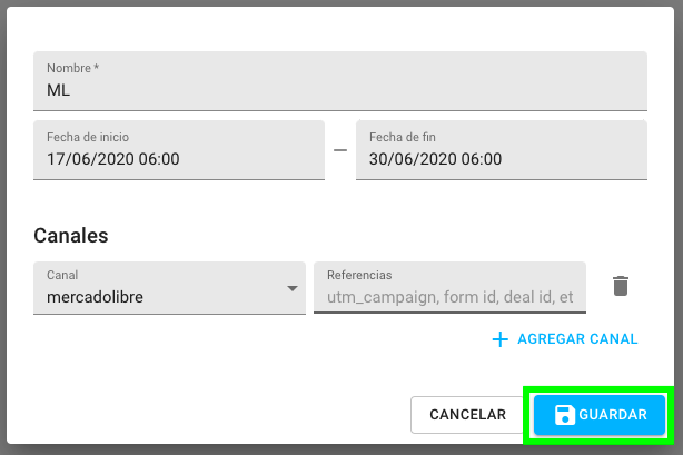 - Canal(es) de la campaña