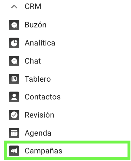 1. Desde el menú lateral izquierdo, en la sección Centro de contacto, dar click en "Campañas.