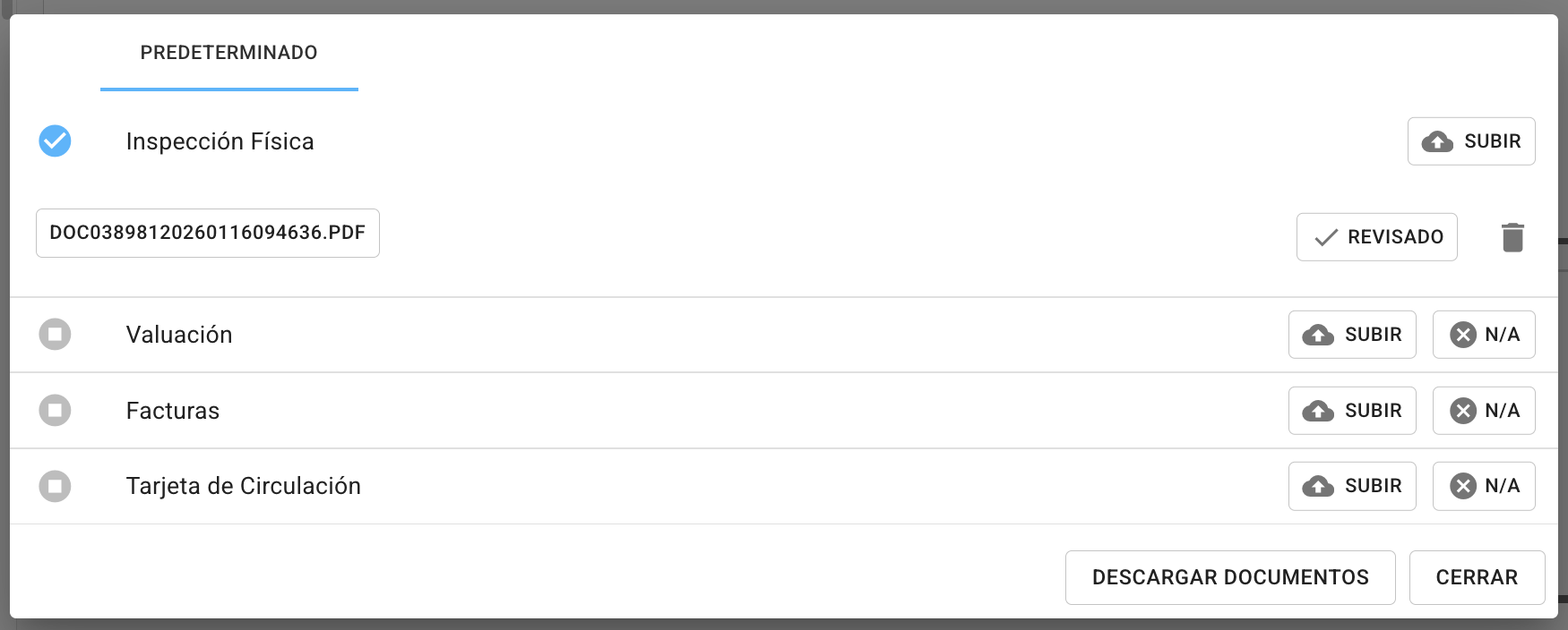 En el caso de "Cargar de documento", estas se van a completar al subir el número mínimo de documentos.