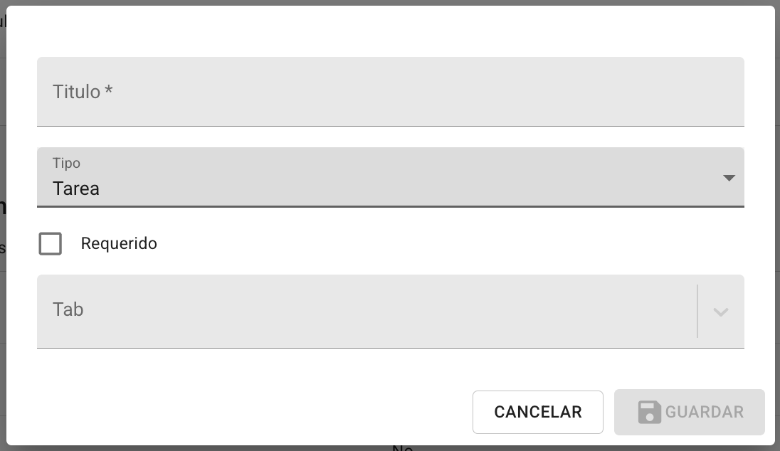 2. Elige el título, tipo, si es requerido y el tab o pestaña en la que se clasificará y da click en "Guardar".